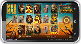 Mad Max Fury Road está cheio de dinheiro. O sinal do jackpot progressivo no canto superior direito do ecrã também é partilhado com outros jogos de jackpot progressivo da Seção 8 Studio. Uma pequena percentagem de cada aposta feita nesses jogos progressivos vai para o prémio do jackpot progressivo. Quando a sorte lhe bate à porta, pode receber um pagamento monstruoso.